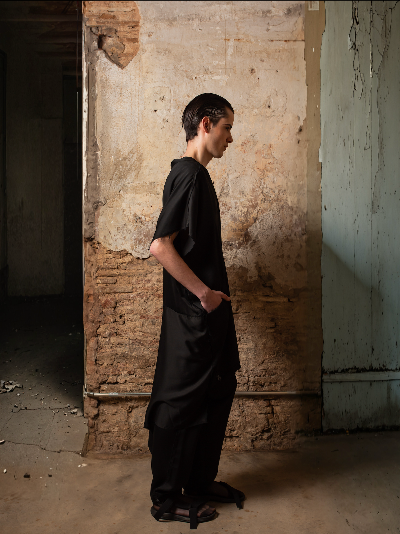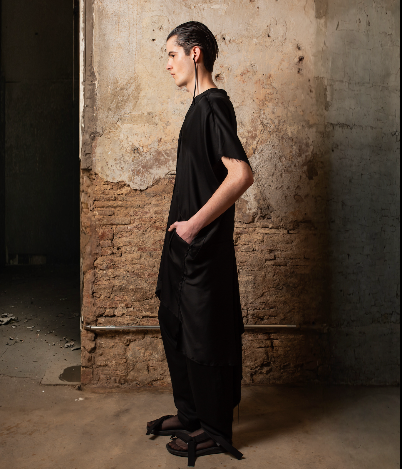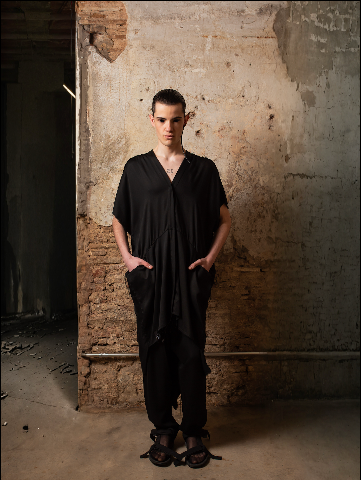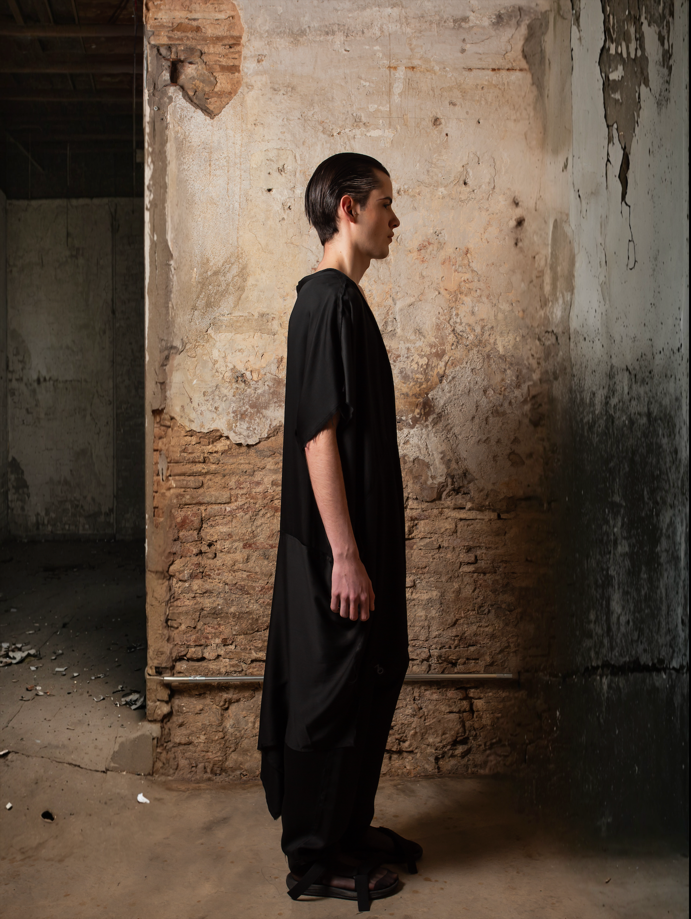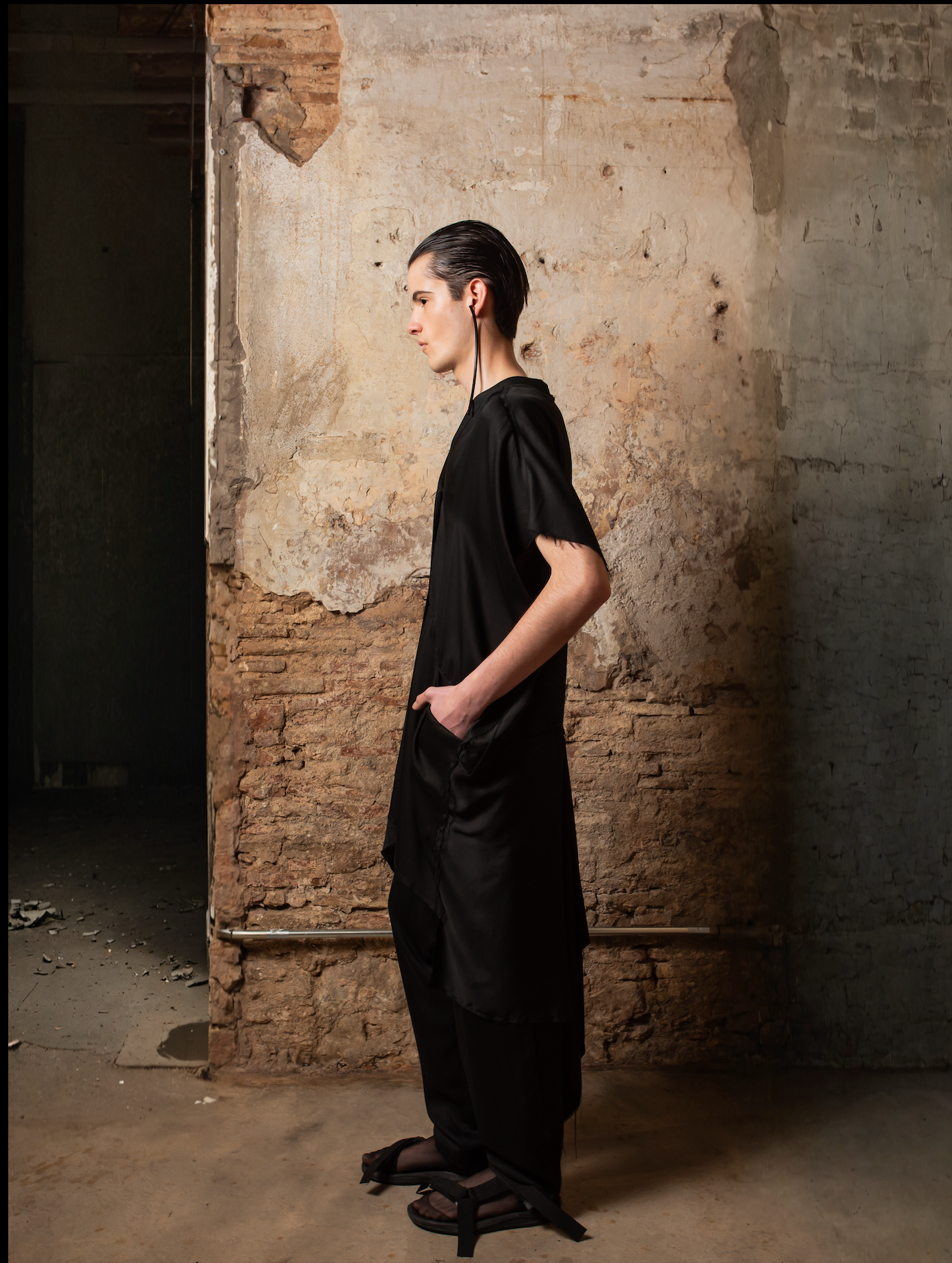 Gracias a su diseño versátil, el Fluid Tencel Frac puede llevarse como chaqueta fluida, capa ligera o incluso vestido, al cerrarse completamente. Inspirada en el corte japonés, esta pieza agender es una declaración de elegancia relajada y creatividad sin límites.