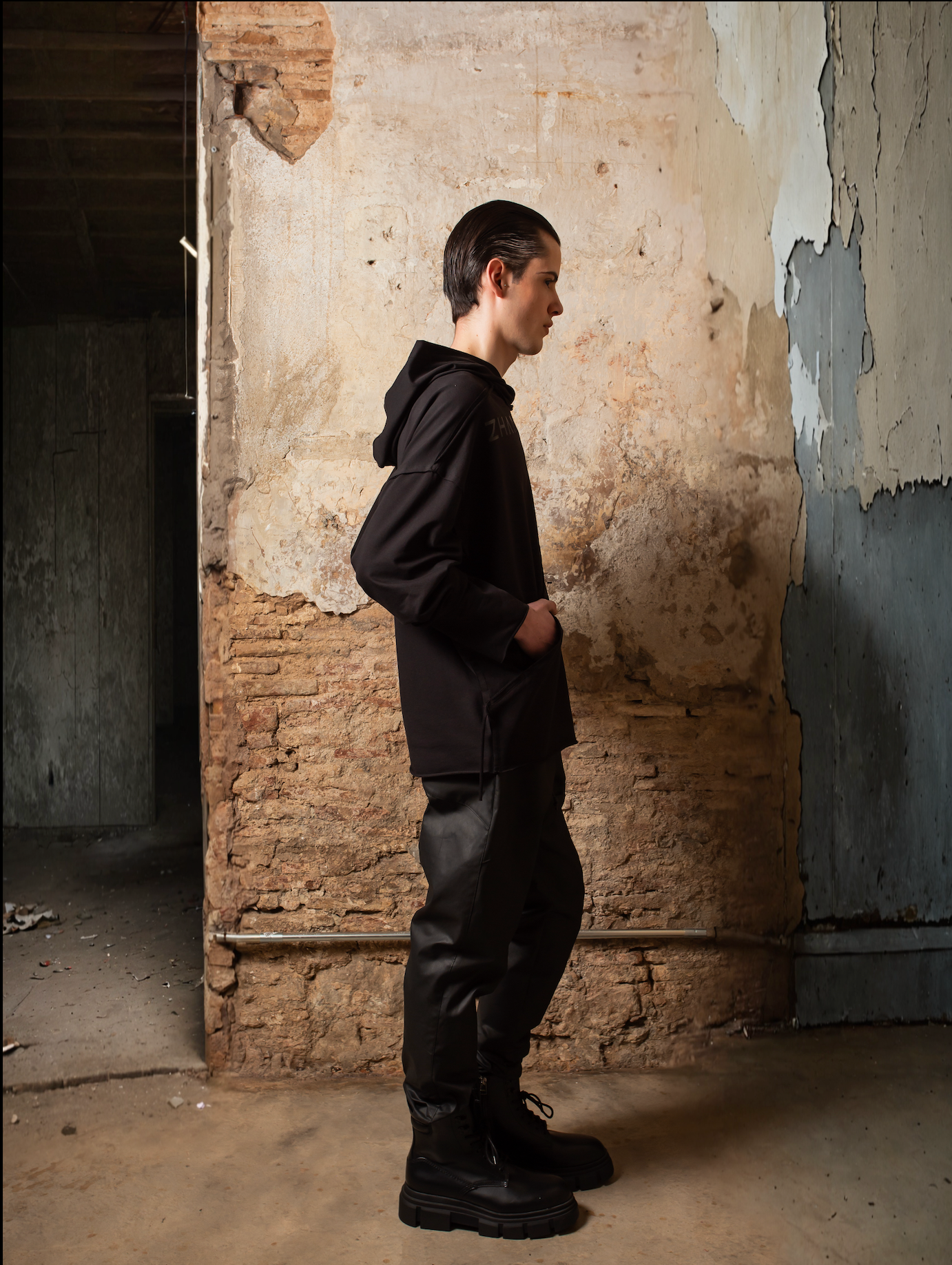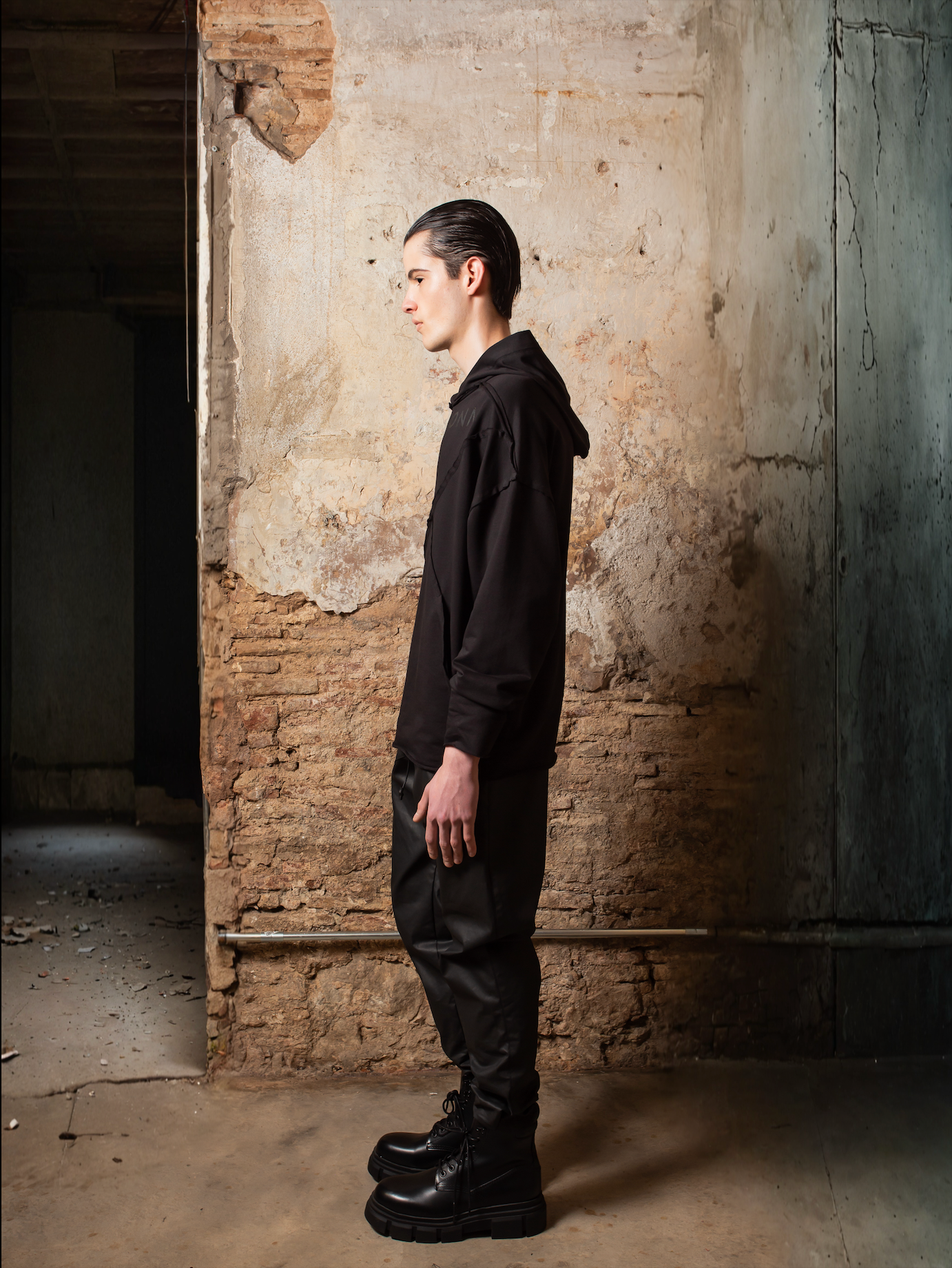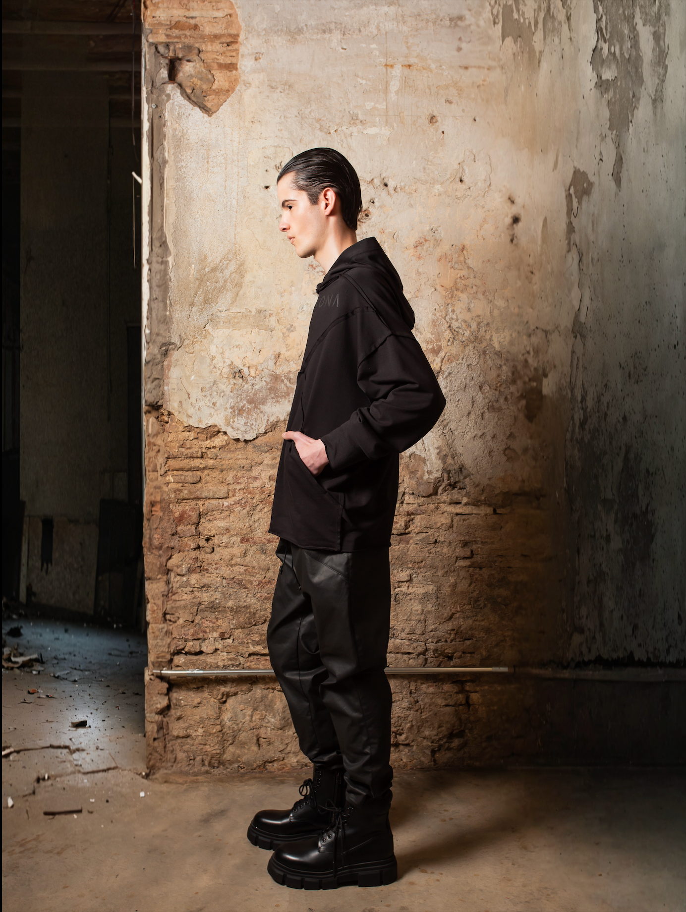 Las costuras visibles y los acabados crudos añaden un toque grunge y conceptual, alineándose con el enfoque agender y urbano de la prenda. La Hoodie Zhannaona es un básico elevado, que combina diseño inclusivo, moda sostenible y una estética minimalista que destaca tanto en looks casuales como en propuestas más elaboradas.